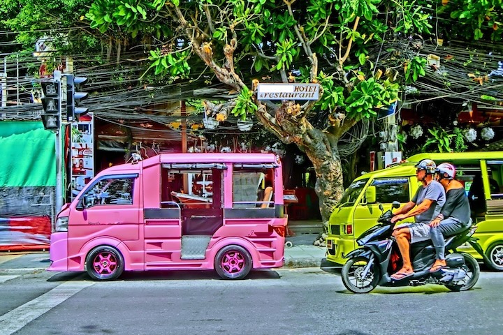 タイならではの有名な乗り物で、タイ人の間では「サムロー」と呼ばれています。