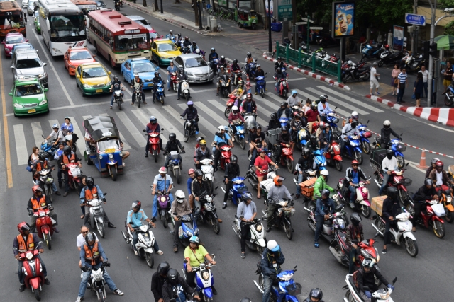 交通渋滞の激しいバンコクでは、渋滞を気にせず走ることができるバイタクは非常に便利です。